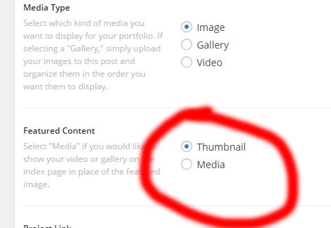 The setting we have select “media” if you would like to show your video or gallery on the index page in place of the featured image. is an added option to replace your featured image with a video. Again this is made custom for the theme.