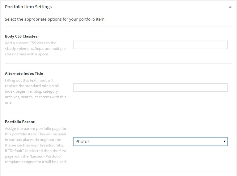 TsavoParticipantSweet, got it for the Portfolio page. Last thing would be the breadcrumbs for the individual portfolio items. Only option for “Portfolio Parent” is default – may this be why it’s not showing either About/Learn in the breadcrumbs?