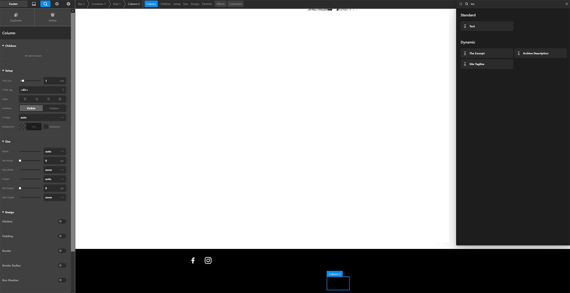 Thanks for providing the credentials. You may need to update the Pro theme to version 5.0.6 since several hours ago, we have rolled out a point release that resolved issues involving the footer. Please also keep in mind that the default colors of the Cornerstone’s section and bar element are using the white color as the background while all the other elements like the text, navigation, button, etc are using black color for the text contents. If you are going to change the background color of the bar or section to black, you will have to be very careful in doing so. You may need to change the colors of the other elements inside first to another color like white before changing the background color.