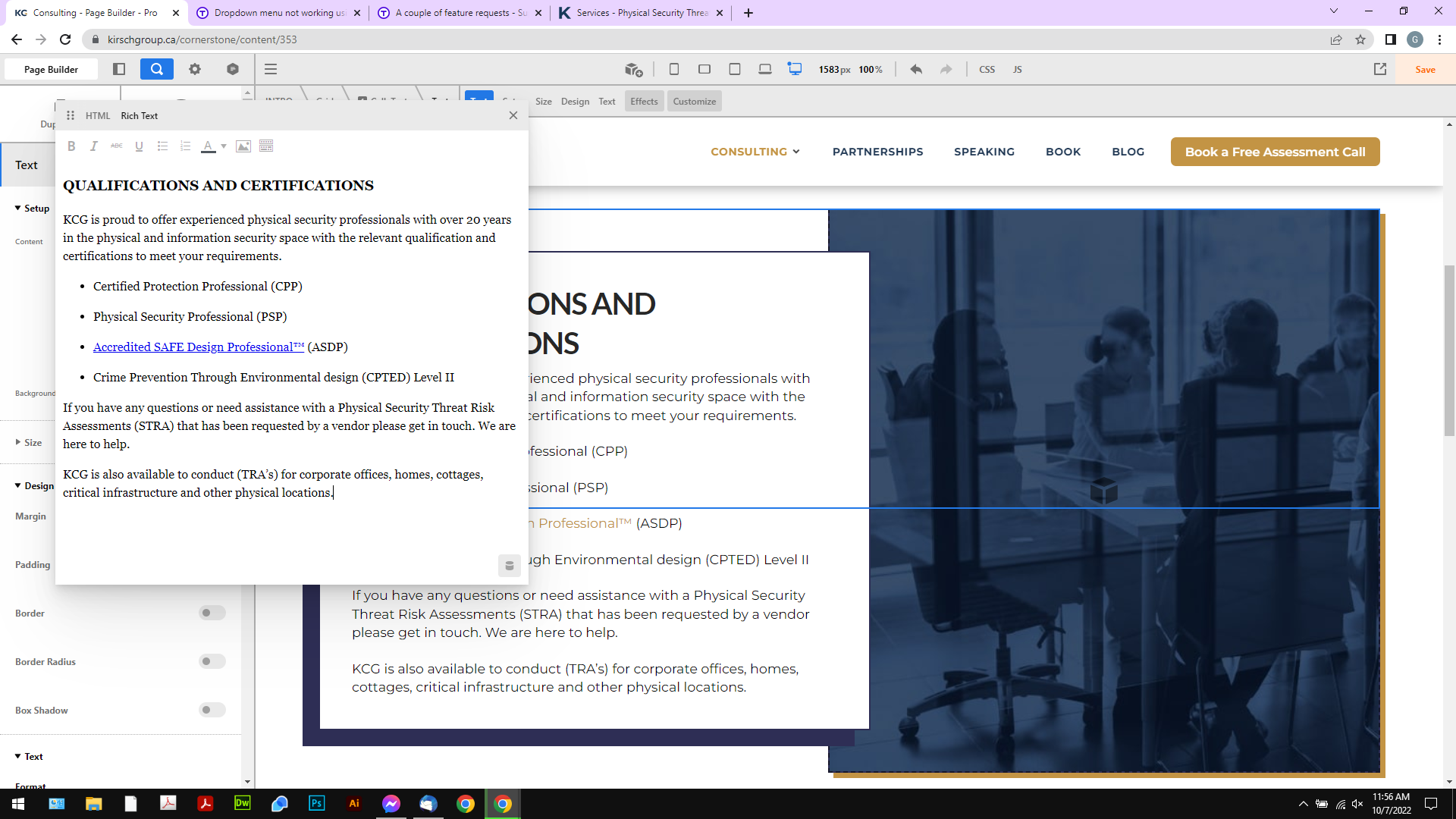 4: An easier way to add a link in a block of text. Right now you add text, and in the html, there is no quick “add link” button. You have to manually add the code.