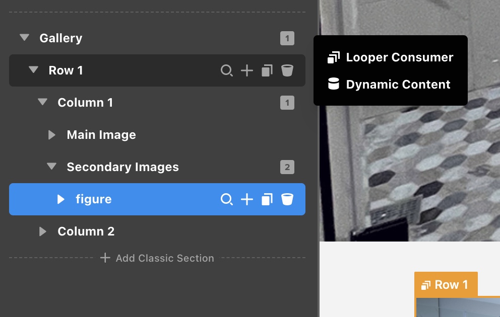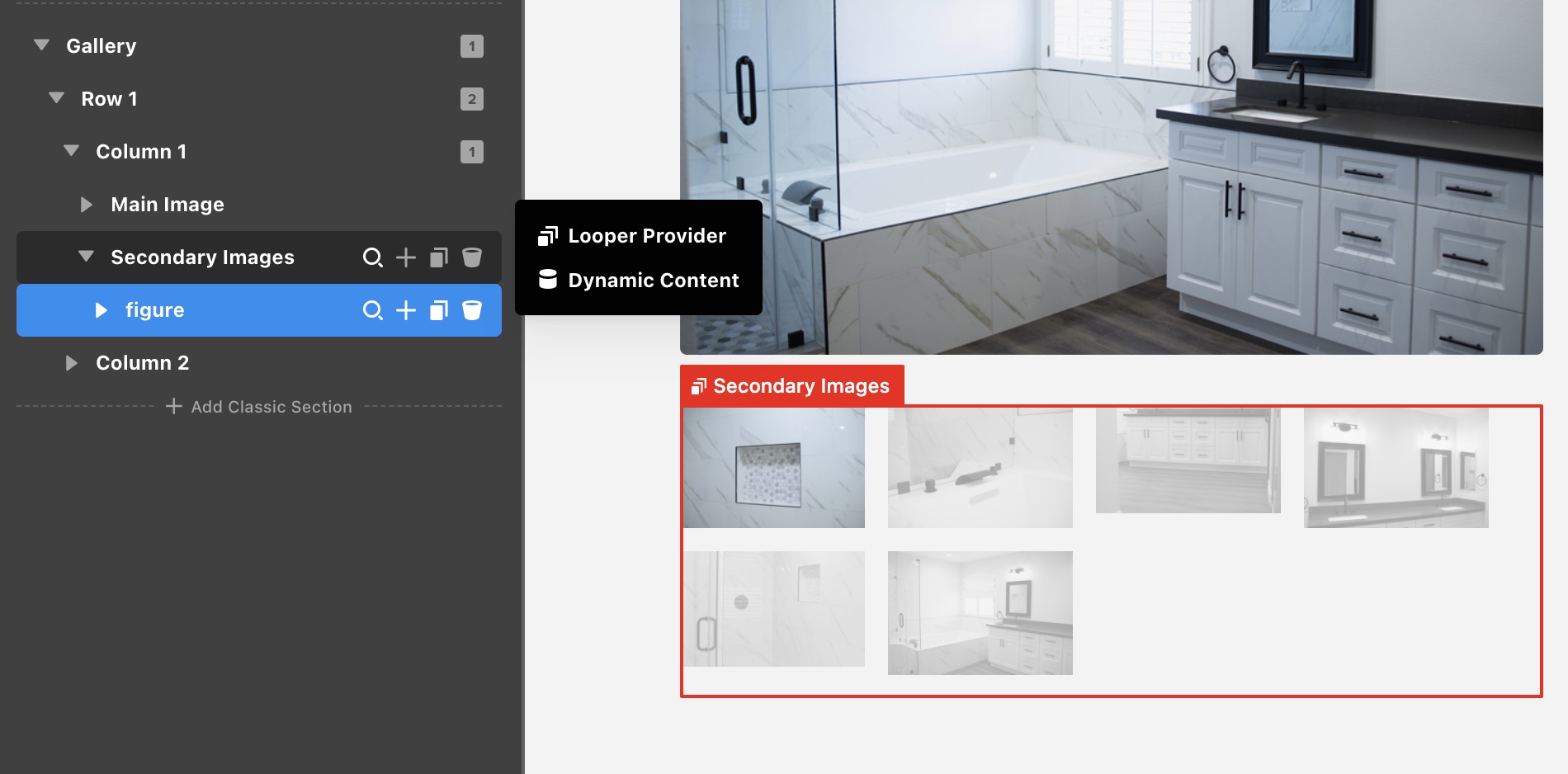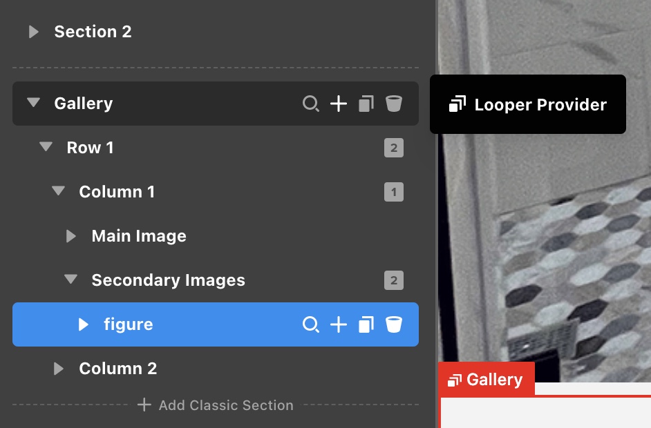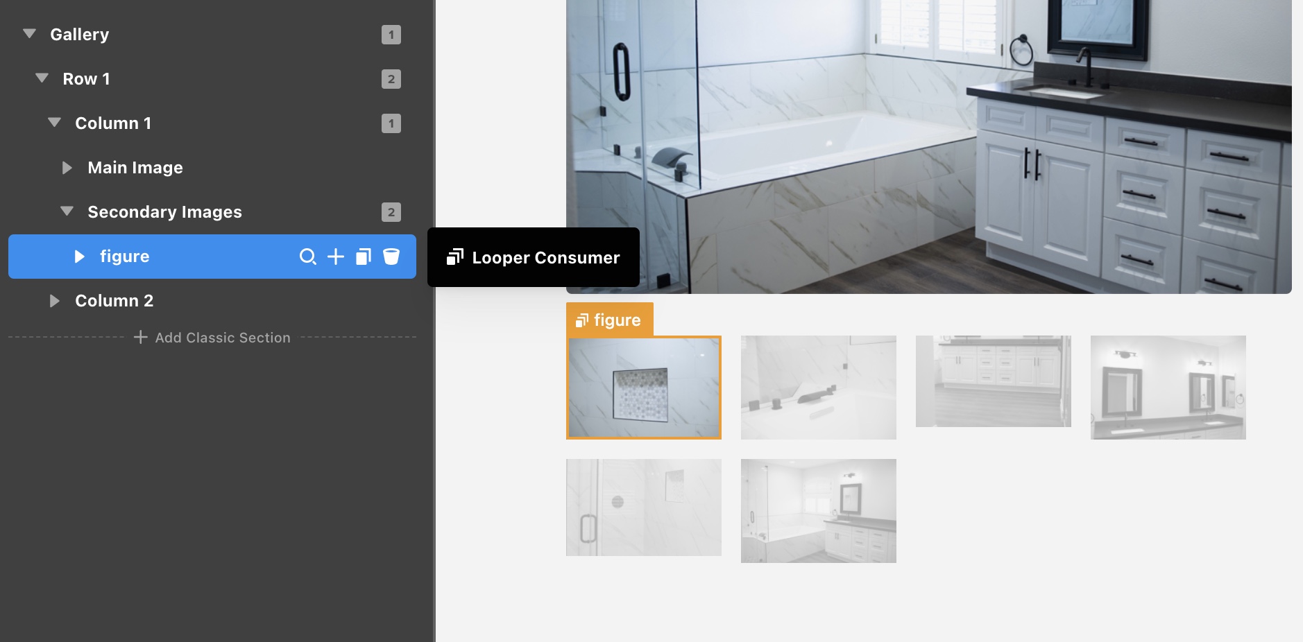 5.) The “Figure” element will be your Looper Consumer. This will be used to display the gallery images.