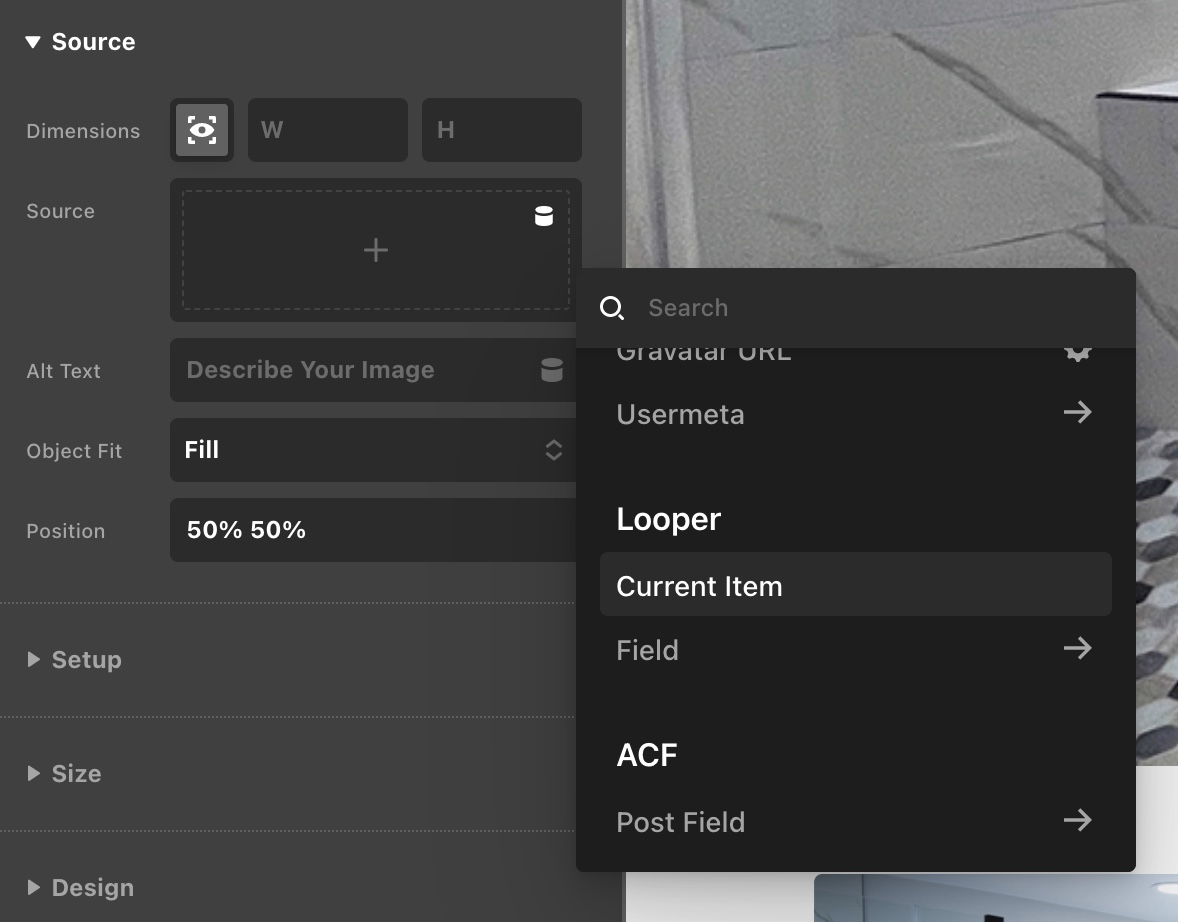 6.) And lastly, your image element will have a dynamic content “Looper > Current Item” to display each of the images in your gallery.