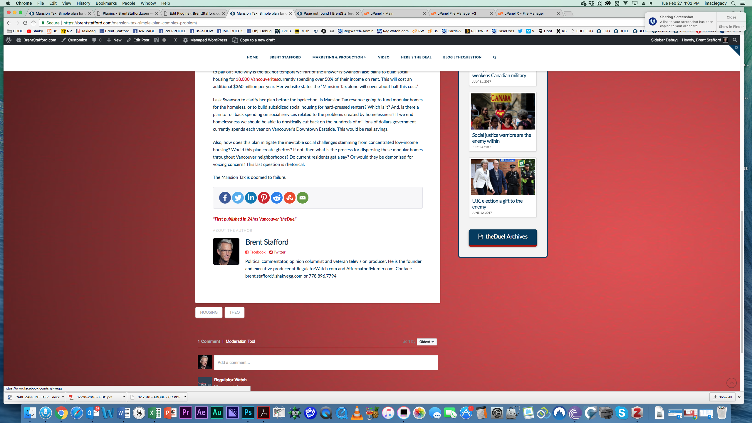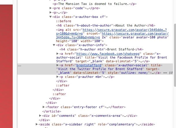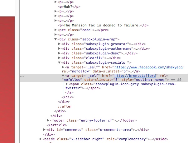 Interstinglngly I uninstalled the X code and installed Simple Author Box plugin. This install also showed a problem with the Twitter URL. Rolling over the plugin you see only: brenstafford