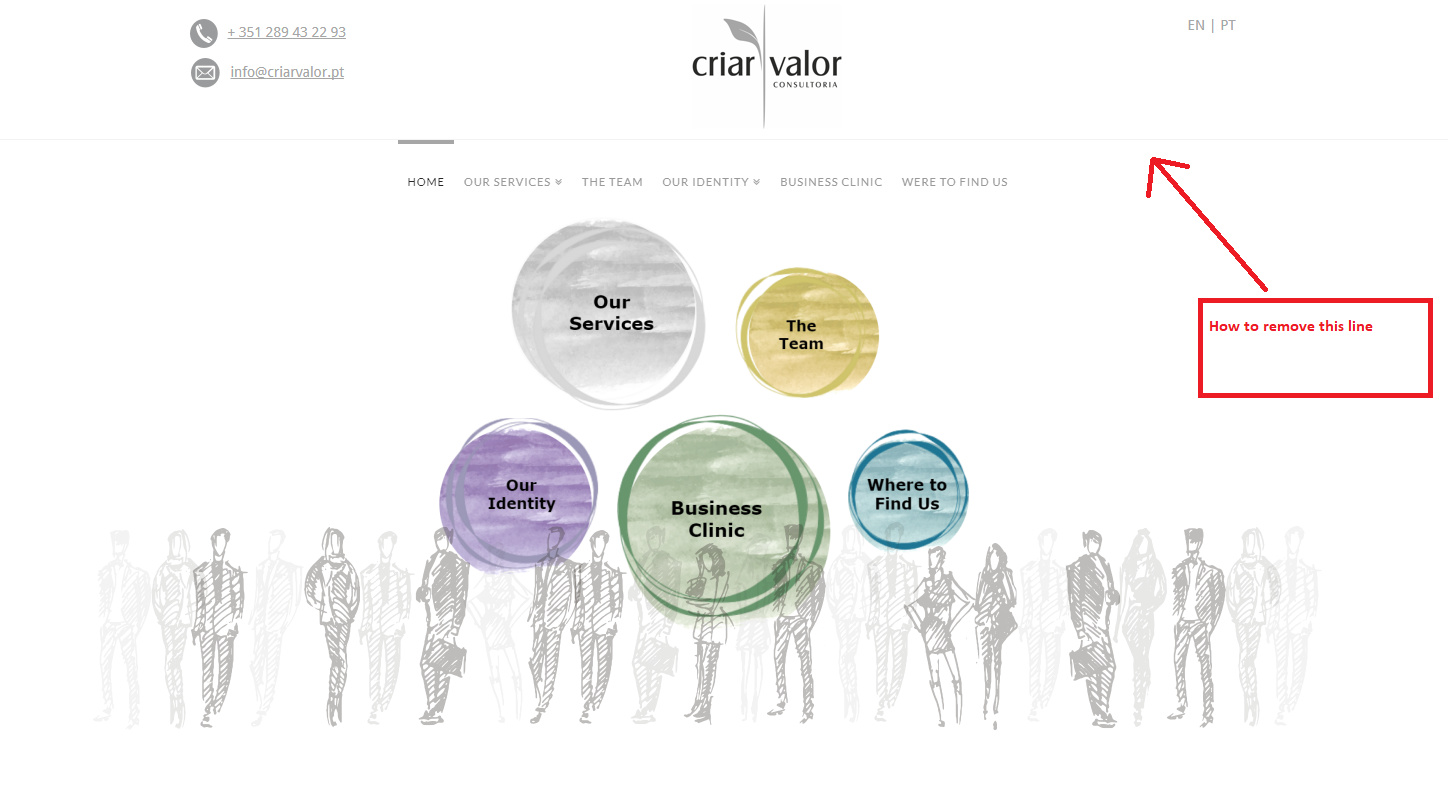 Can you help me to get rid of a header line bellow the logo.