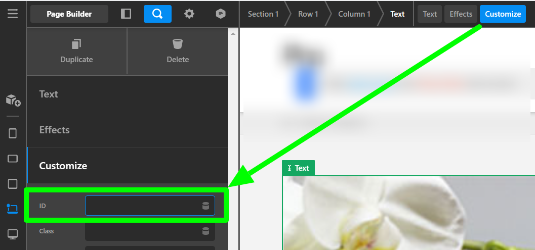 How can I add an id inside a specific part of the text layer in the cornerstone page builder?