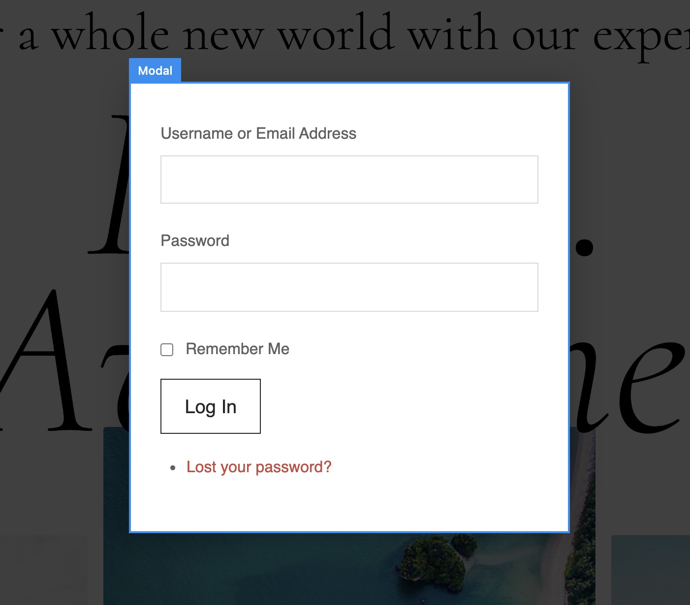 Thanks for writing in! Regretfully, we do not have any login form element that you can add to the Modal element. You may need to install 3rd party plugin and use a login shortcode in a Raw Content element inside the modal content. Perhaps one of these plugins may help you: