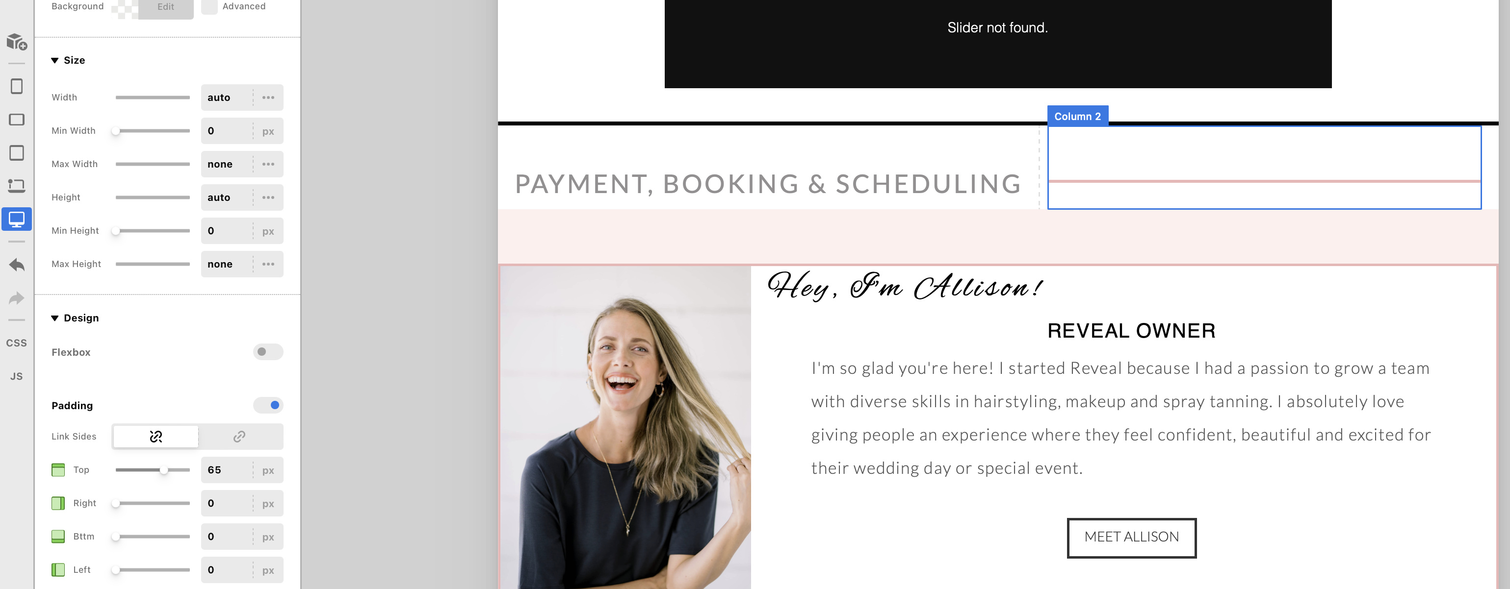 Creating a line next to the title. How can I ensure the line is evenly spaced, exactly in the middle of the title? For now, I’ve added 65 px padding to the top, but I’m not sure if that’s exactly even.