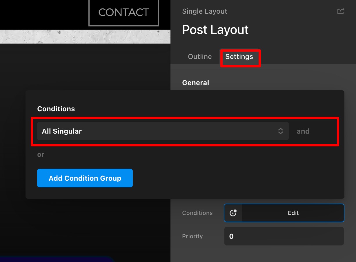 I added an archive layout, called it Blog, set the condition to Viewing Blog…and sudddenly the rest of the site isn’t
