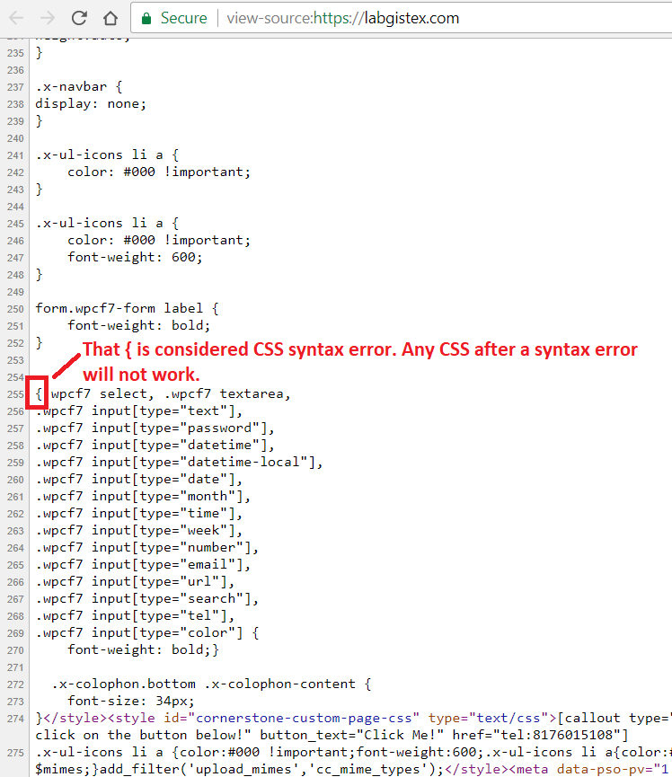 As you can see that part of your CSS is not working yet and the font size of your footer bottom is still small. That is the reason why on the previous reply it was ask you to update that part. There is extra { that is causing CSS syntax error.