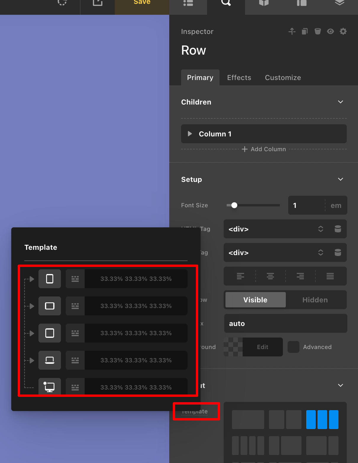 I would suggest you please go to the Row->click on the Template ->Set the column layout for each breakpoint as per your design. Please review the screenshot below.