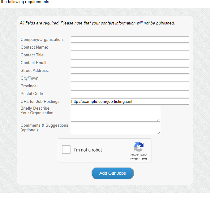 You can enter the location you will post your XML file as the “URL for Job Postings”.