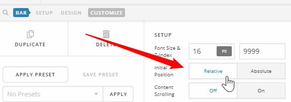Thank you for providing more details. In that case, you will need to have 2 versions of your bar. Duplicate your bar first and set one to relative.