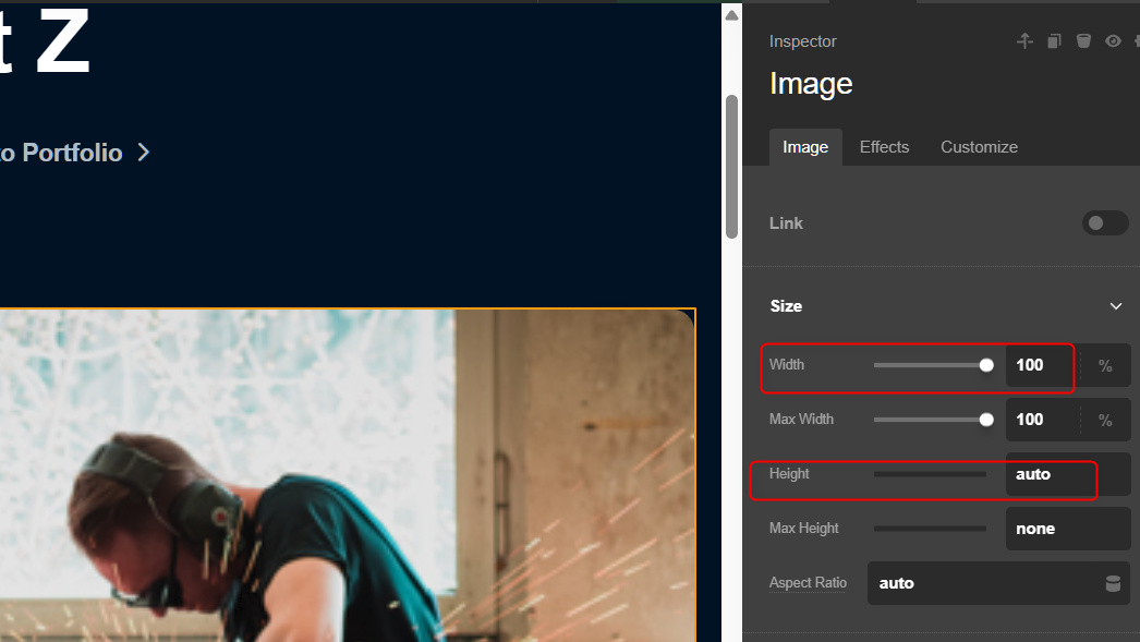 Actually, the Single Portfolio template is displaying the featured image as expected. The width is 100% as well as the maximum width. In the sample portfolio items I added, the featured images are larger when they are displayed because there is NO height being set in the template. I assumed that your only basis for the featured image is the first “Calspace” portfolio item, without considering the other featured images of the future items that you may be adding.