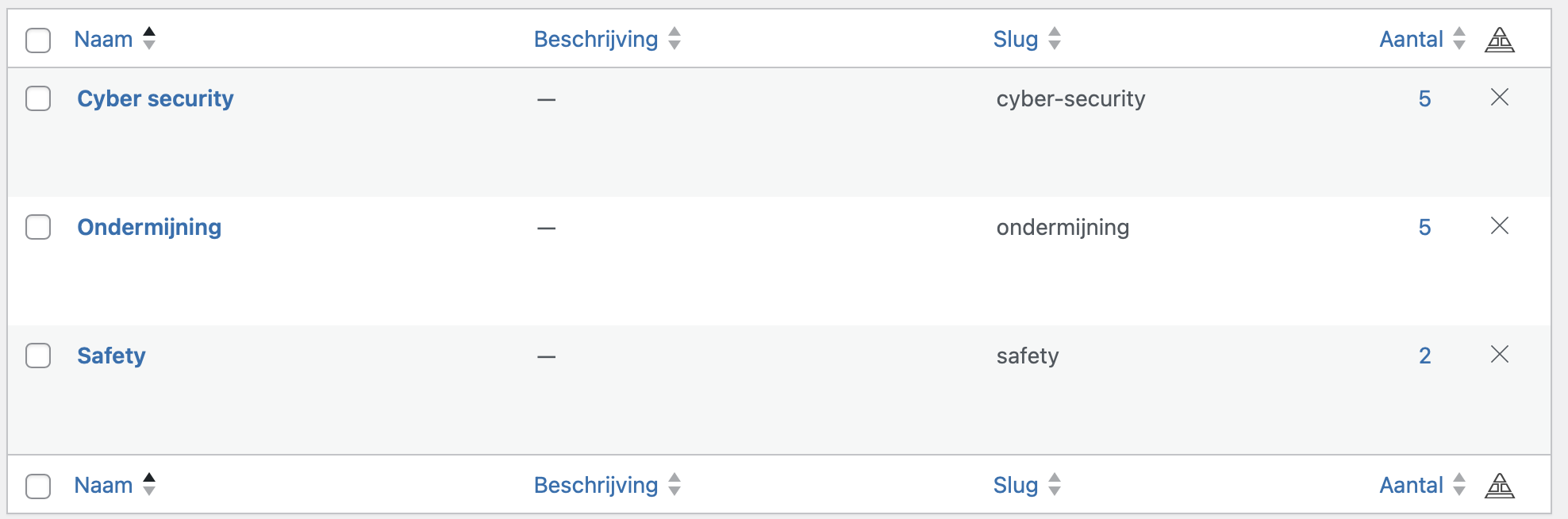 To illustrate: there are 12 pages (CPT) and all have a taxonomy-item attached (e.g. assigned a category)