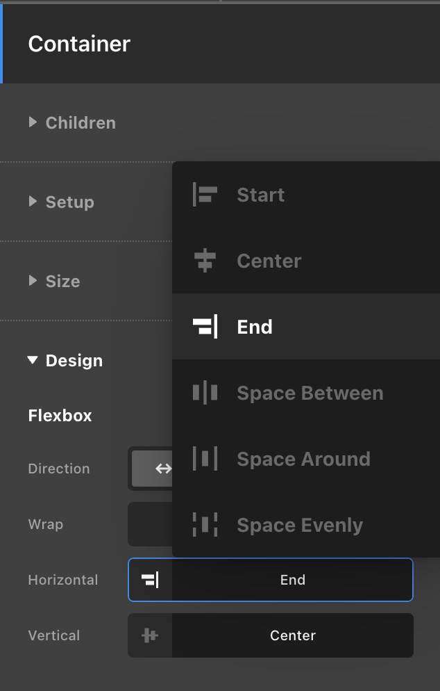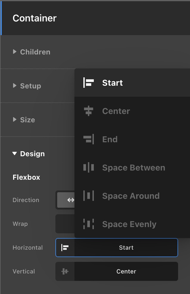 My Menu container is Horizontal Align: start and is aligned to the left which is what I want.