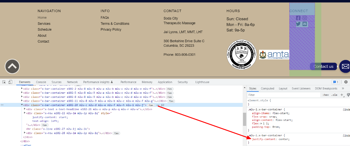 I am trying to get the social icons to align with the headline as they are aligned in the other containers on the footer. The client wants them set up as is with 2 to a row and then aligned to the left with the headline as the others are. How can I achieve this?