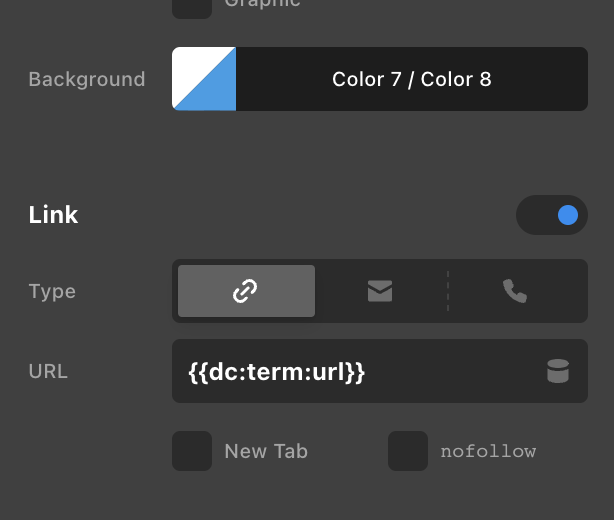 I use the the {{dc:term:name}} to pull in the category name and then had the link activated to {{dc:term:url}}