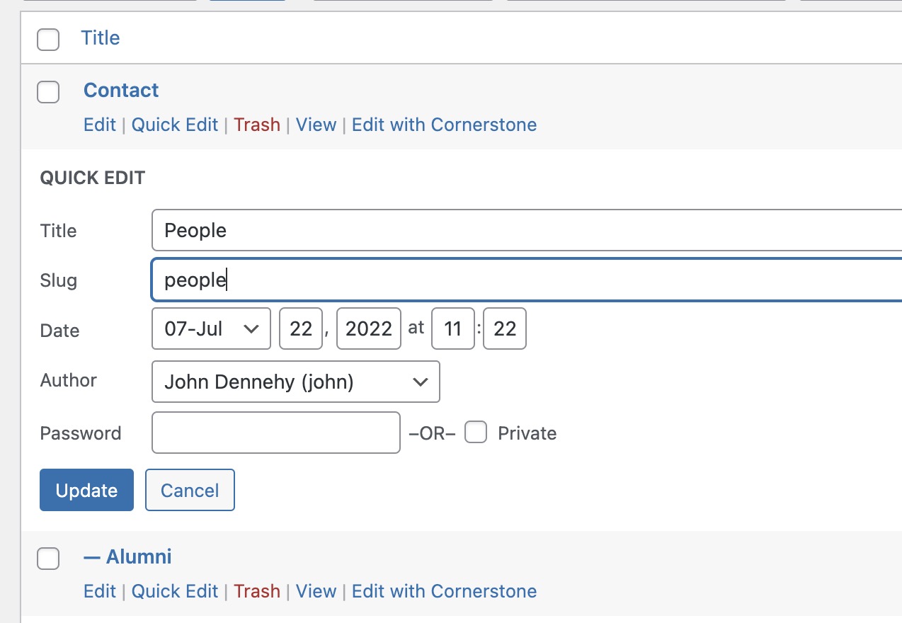 Something changed with a recent update and I can’t figure out what that is. the Alumni archive is blank and the page on the front end has an error.