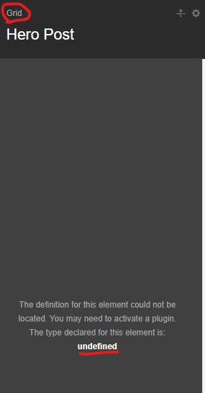 When I go to pages that have Grids and I click on the Grid element, it says the element is undefined.