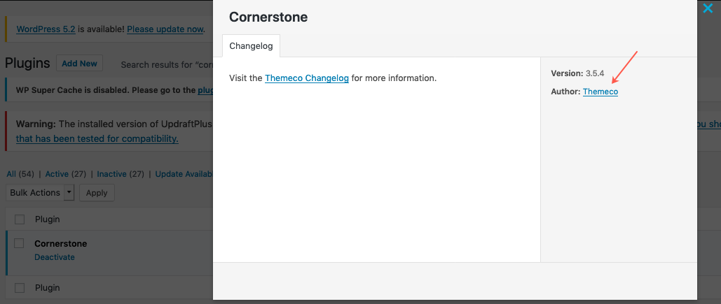 When I click on view details it shows Themeco as the author so that is why I think we were confused on our end.