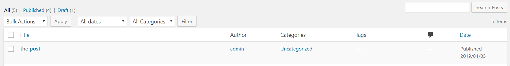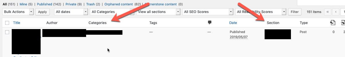Please see screenshot. The posts have column titles of Categories and Section.