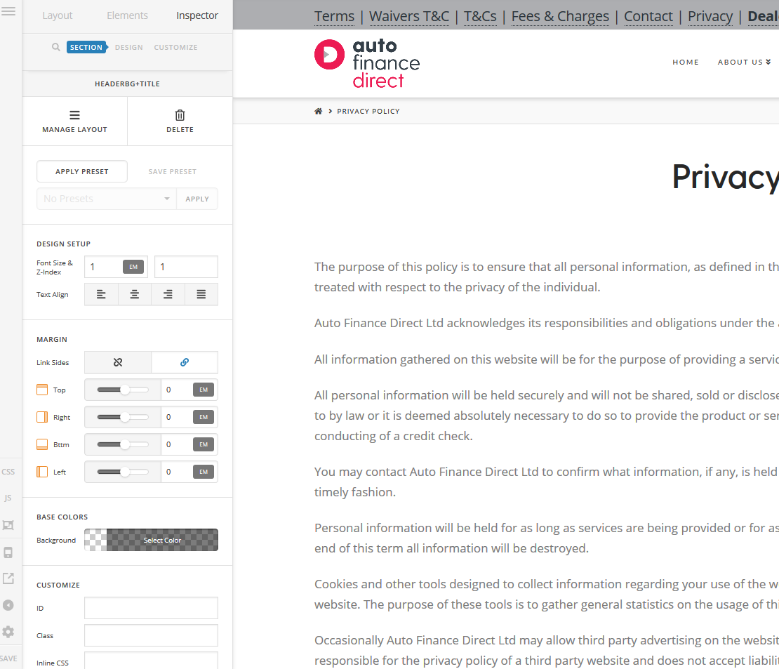 - Edit any existing page through “cornerstone”