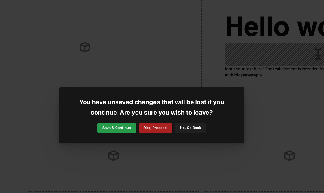 When navigating away from a workspace without saving there is a popup that prompts you to save & continue. Clicking this does not save but does continue.