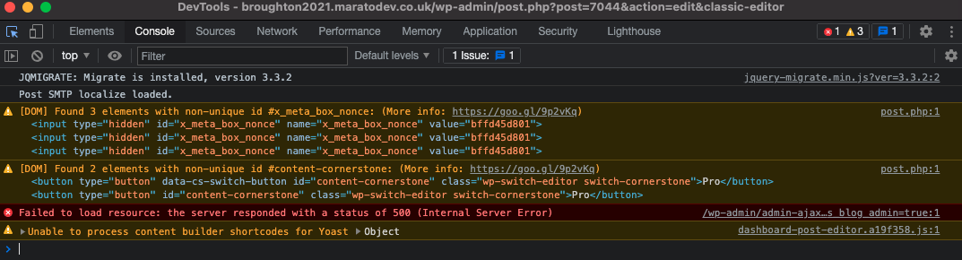 A very strange one here, we have several pages that have breadcrumbs on them and this is causing the WordPress backend to critical error when updating the page that has the breadcrumbs. Here is the Console Log when this happens.