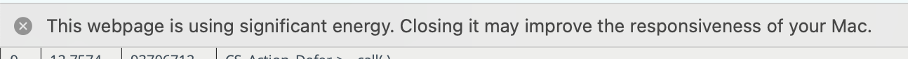 However, after updgrading to Beta 2, I immediately started getting the “this webpage is using significant energy” message below. And this is just while visiting the homepage of that site (not even within the builder or anything).