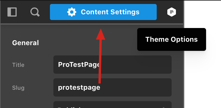 I’m now in the Content settings where to switch back I click the magnifying glass.