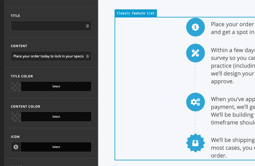 The title is still “in there” somewhere though, because when I hover over the feature boxes, the correct title is shown in the blue hover state title.