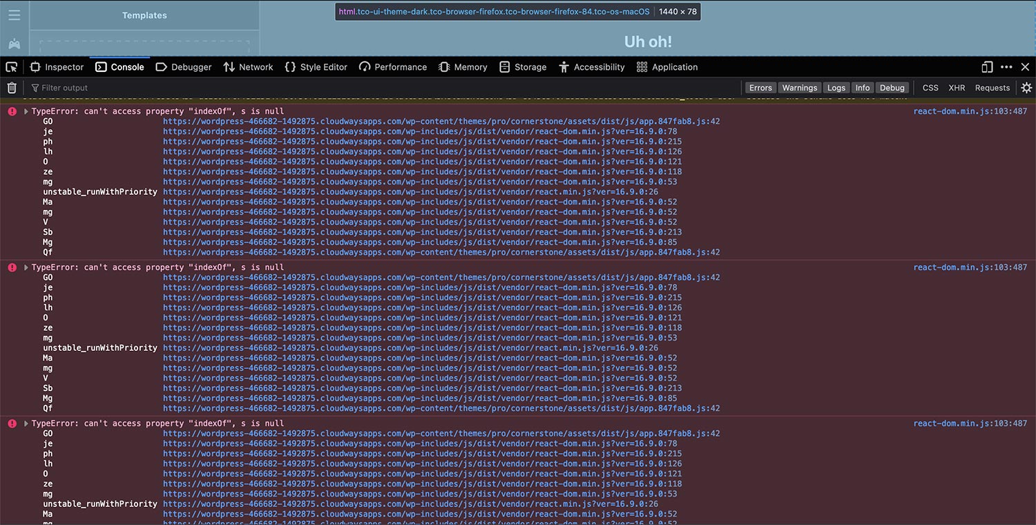 On one of my Beta 9 sites the Template manager displays no existing templates, only the dreaded Uh Oh!