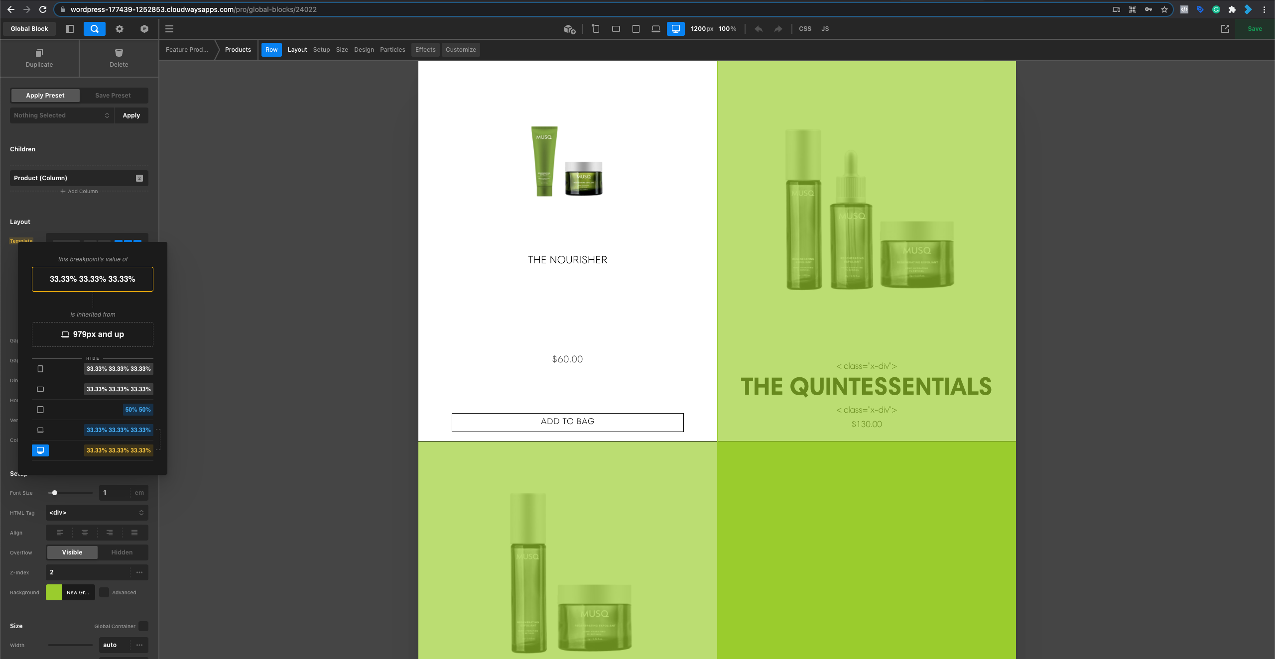 See below - a global block showing as 3 columns in Beta is actually rendering as 2 columns: