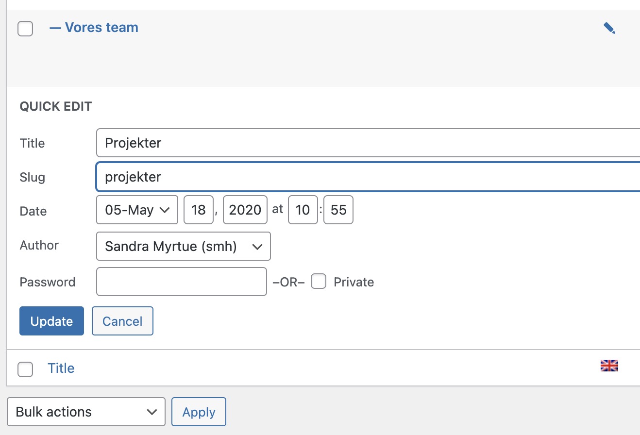 Your “Projekter” page is using projekter as the page slug while your custom URL slug for the Portfolio items in Cornerstone > Theme Options > Portfolio is using projekter as well. You will need to change one of the slugs so that the Menu can identify the “Projekter” as the parent page of the portfolio items.