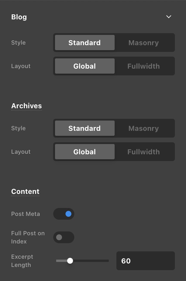 2.) To get rid of the small text under the title of the post that has the category, author, and date, please go to Cornerstone > Theme Options > Blog > Content and turn OFF the “Post Meta”: