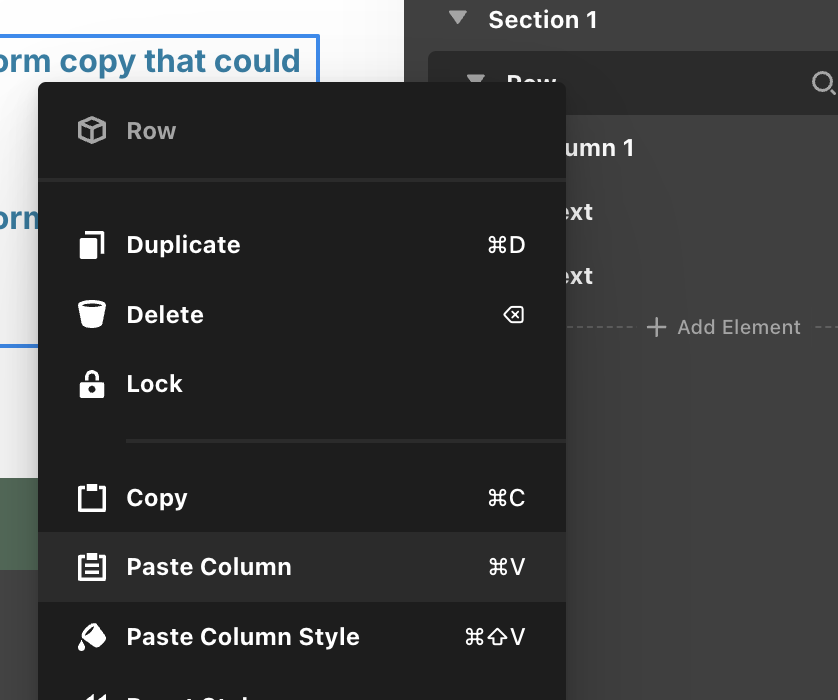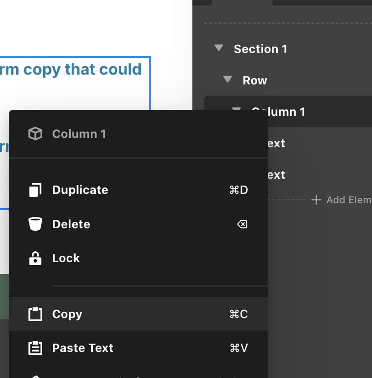 I’m trying to copy the elements in a div and paste the elements into the div right next to it and nothing happens. We’ve also tried copying an element and trying to paste the style to another element and this is also not working.