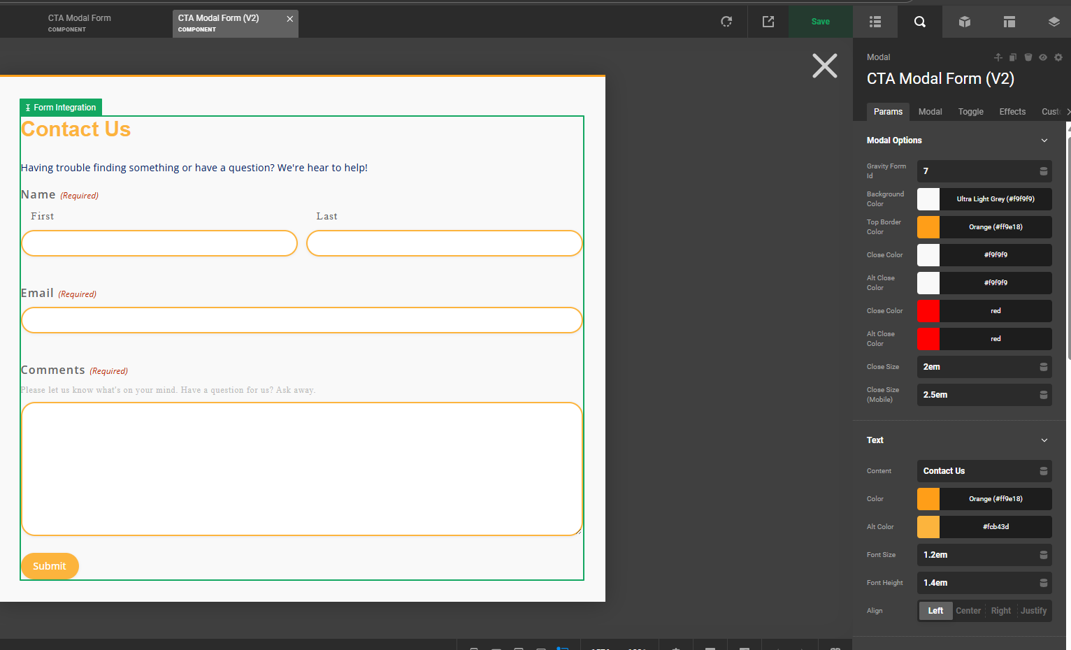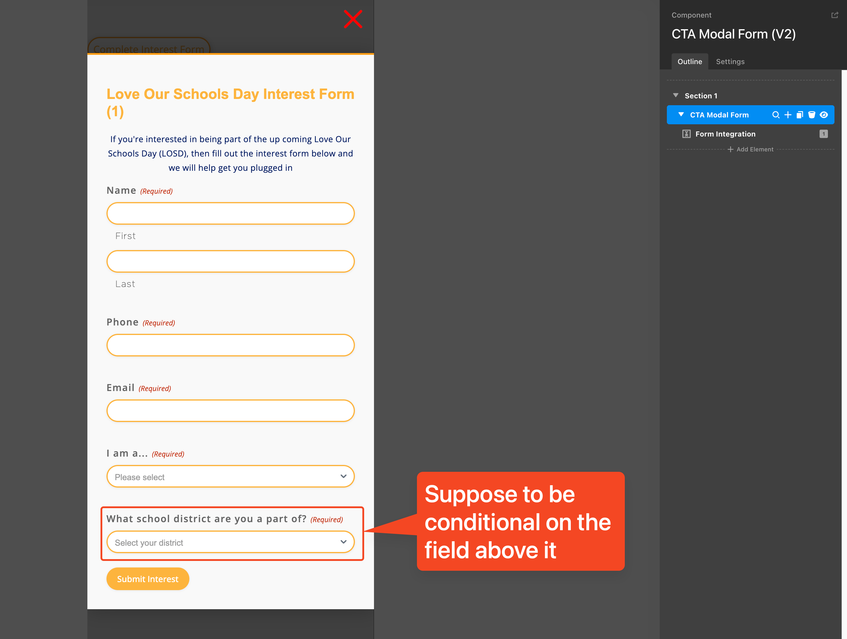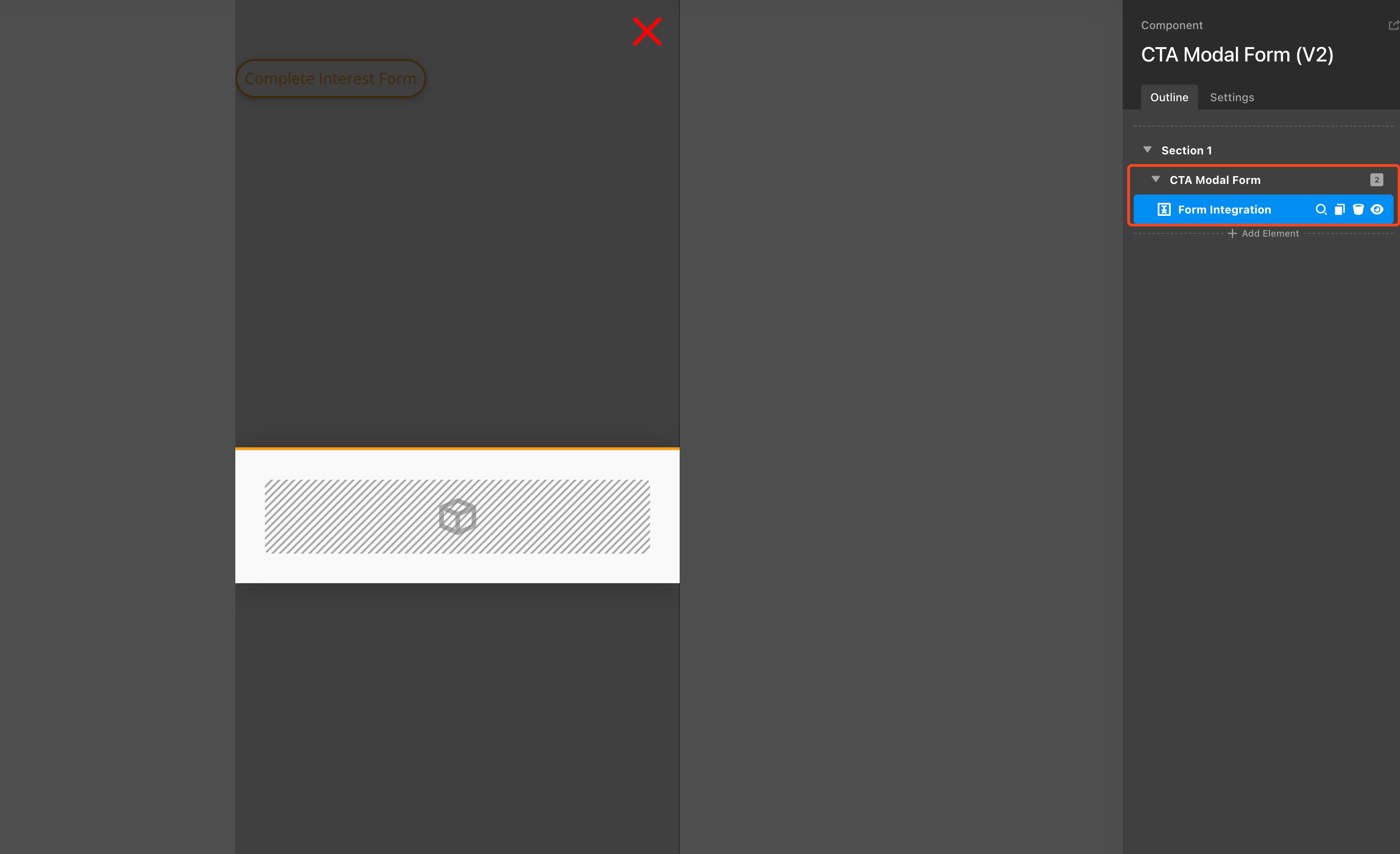 I have an issue with applying conditional logic to a Gravity Form. Using the Modal and Form Integration components as you can see below, my form stops loading within Cornerstone once conditional logic is applied to the form