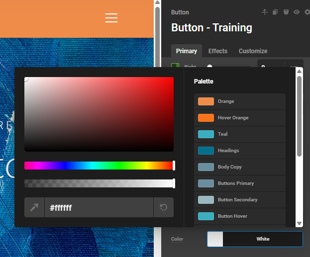 I am able to set the color of the border on a button. I am not able to set a different color for the “Interaction” state. As you can see in this screenshot, the “Interaction” tab at the top of the Border Color Picker for a button is not visible: