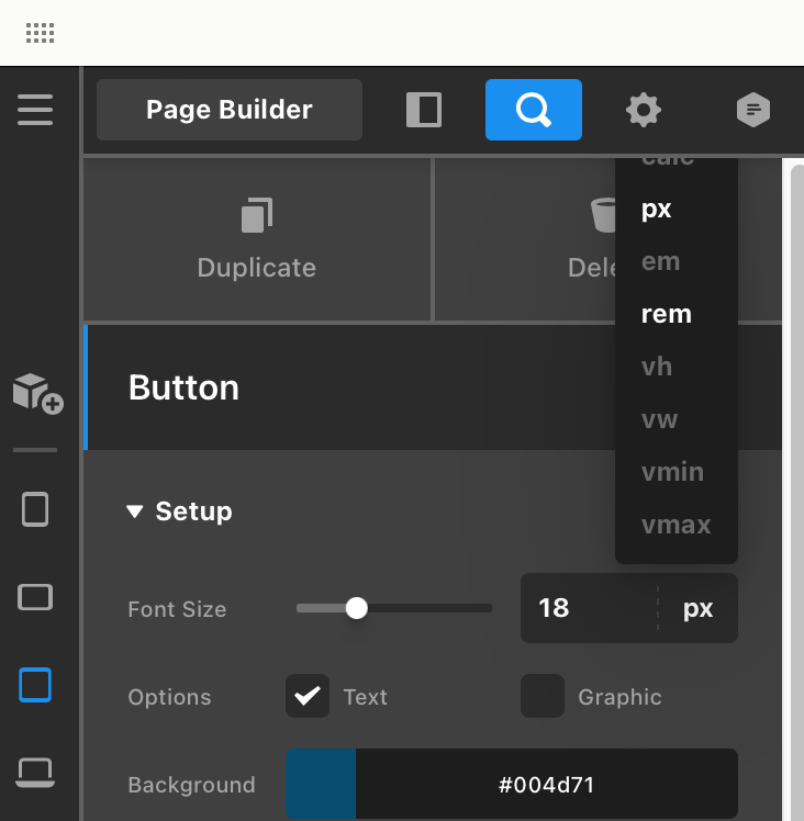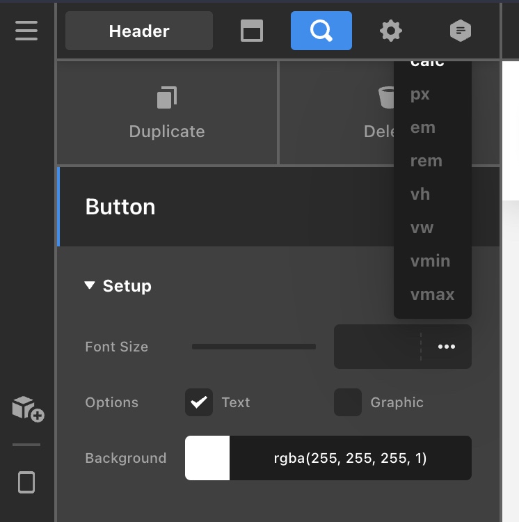 BUTTONS -> SETUP -> FONT SIZE (and the choices get cut off so you can’t choose one of the top ones, just the bottom ones? I can only see from vmax until pix at the bottom of the list.)