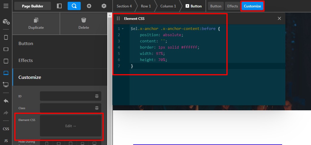 In order to achieve the given button layout, I would suggest you please add this custom CSS code to the Button element CSS.