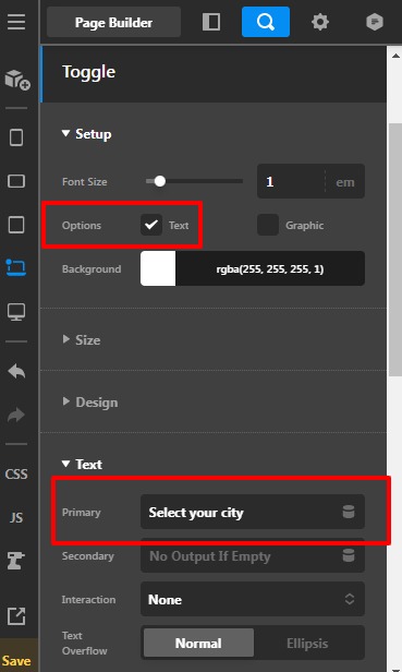 To add the text to the Drop Down you need to go to the Toggle —>Enable the Text option and then enter the Text in the Primary text field. Please have a look at the given screenshot below.