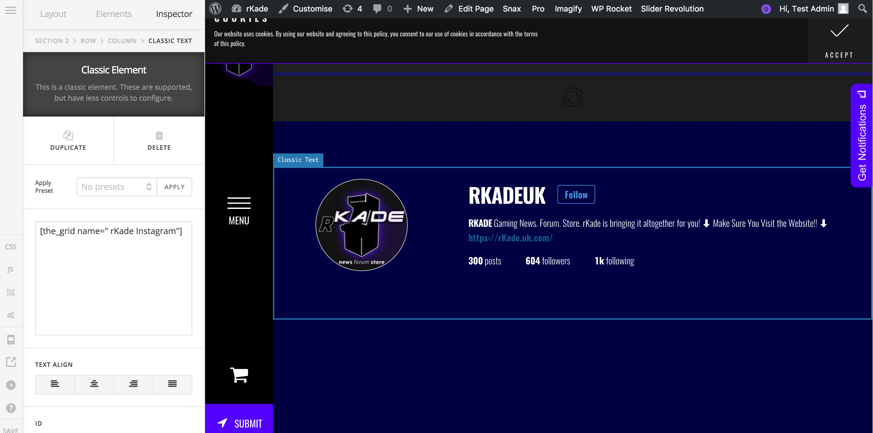 I see following error message in browser console in Launch Page Failed to load resource: the server responded with a status of 500 () https://rkade.uk.com/cornerstone-endpoint. What that error message tells us is that there’s something in your system preventing cornerstone-endpoint from loading thereby blocking Cornerstone from saving/functioning correctly. If you could contact your host and they should be able to whitelist the Cornerstone endpoint and get this working. Along with that please make sure that the hosting you are using is compliant with the specifiations that WordPress community has recomended: