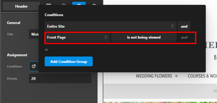 Firstly, I have 5 different headers although one generic one is set globally. Second, how can I make the homepage exempt?