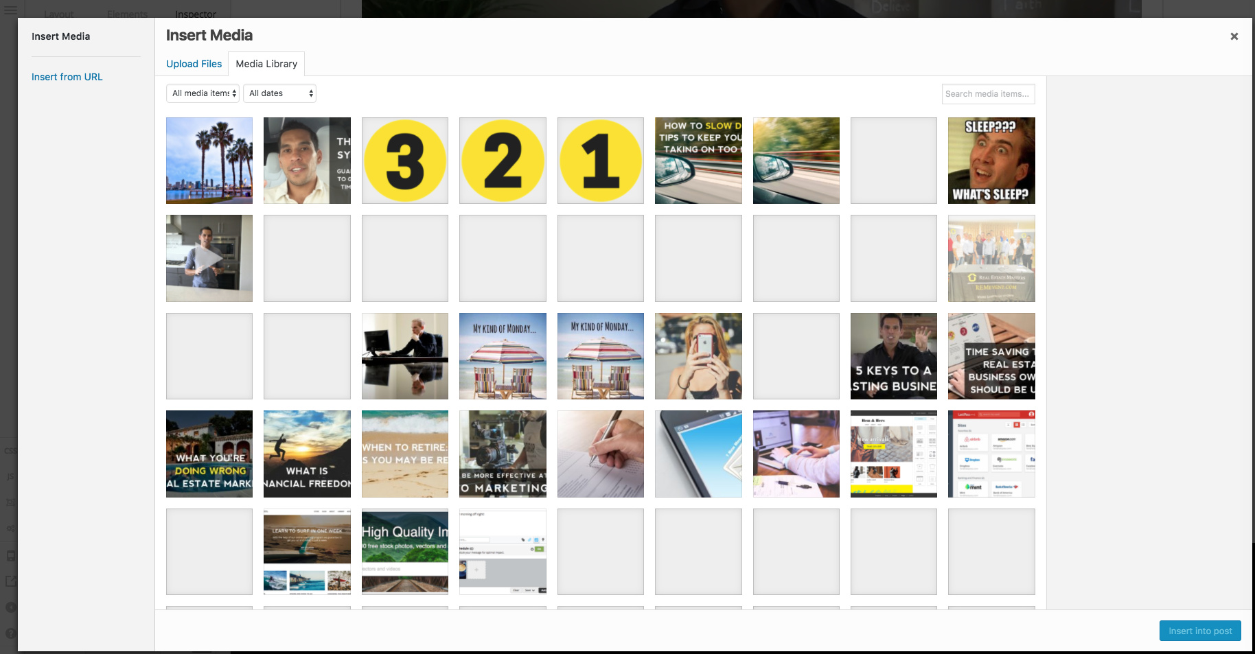When I go to add an image to the page, my media files aren’t showing up for me to select. I have updated the theme, cornerstone, and all my plugins. Please help.