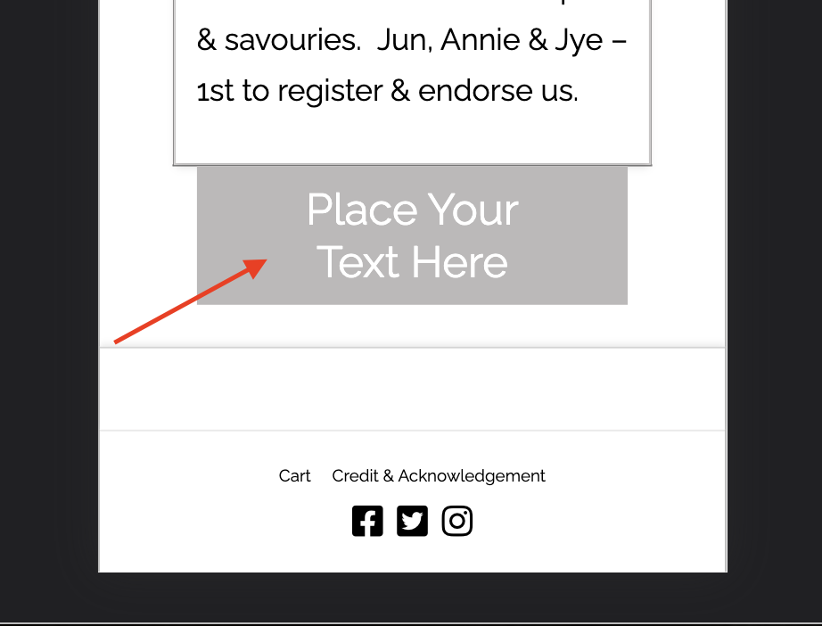 I used to have some text in the box, but it disappeared at the front end. Instead, it says, “Place Your Text Here”.