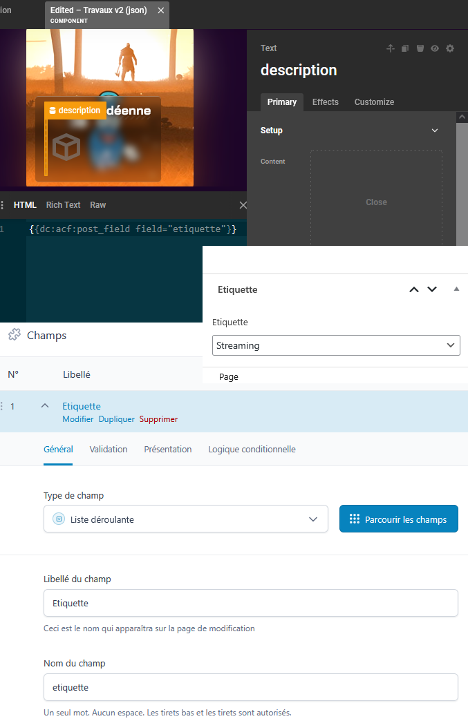 I can’t display that “etiquette” field i’ve created in ACF, what im i doing wrong ?