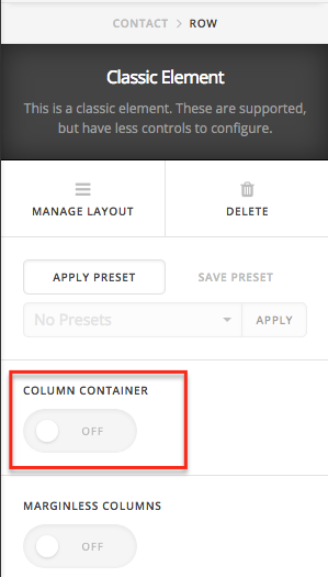 In the meantime, you can also select the relevant row and then switch off column container and also there is marginless column option.