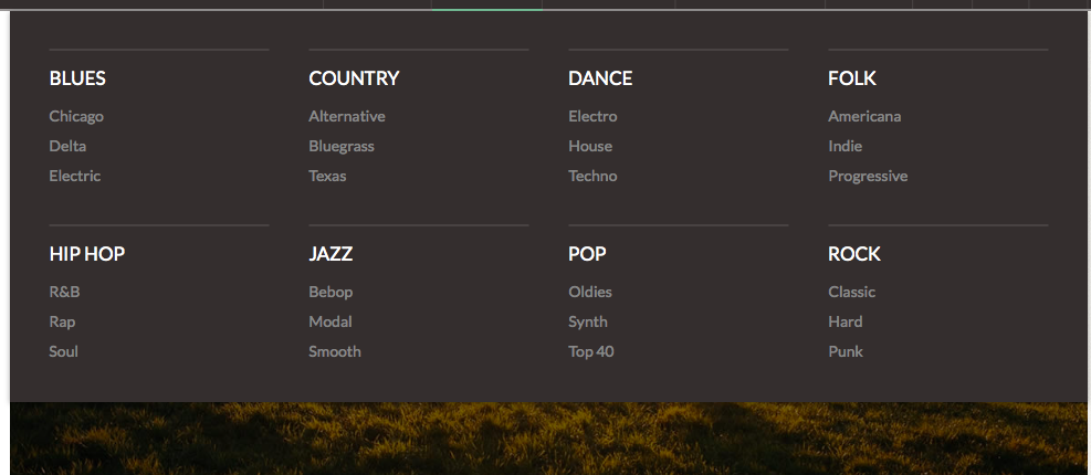 I changed my navbar background color to white, with some level of transparency, so when the mega menu drops dow you can see the post slider picture on the back ground. However, the name of the subcategories appear over a white background, and not transparent like the main categories. How do I change it so the subcategories have the same level of transparency as the main category names?