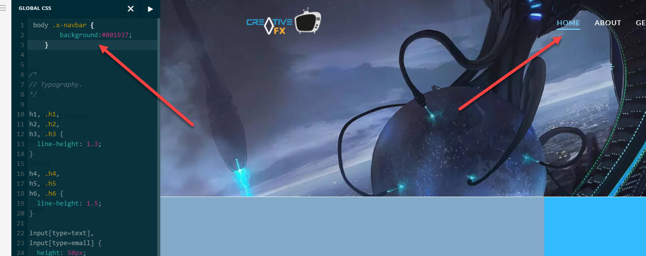 I added this code in Dashboard - X - Launch - And put it in the very top of the the global CSS. Nothing happend