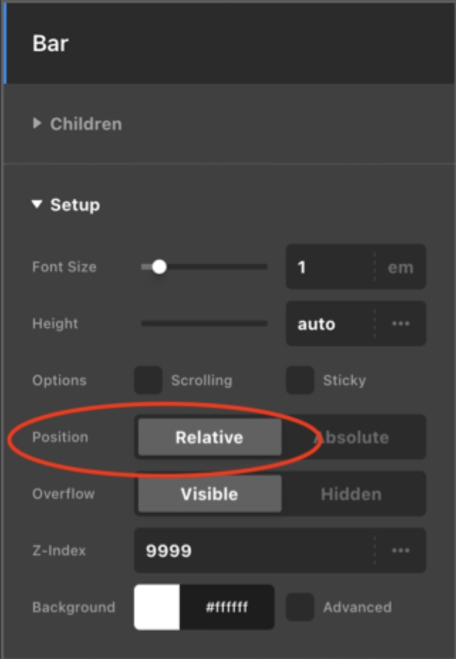 2.) Edit the newly duplicated header and in your Bar element settings, change the position to “Relative”.
